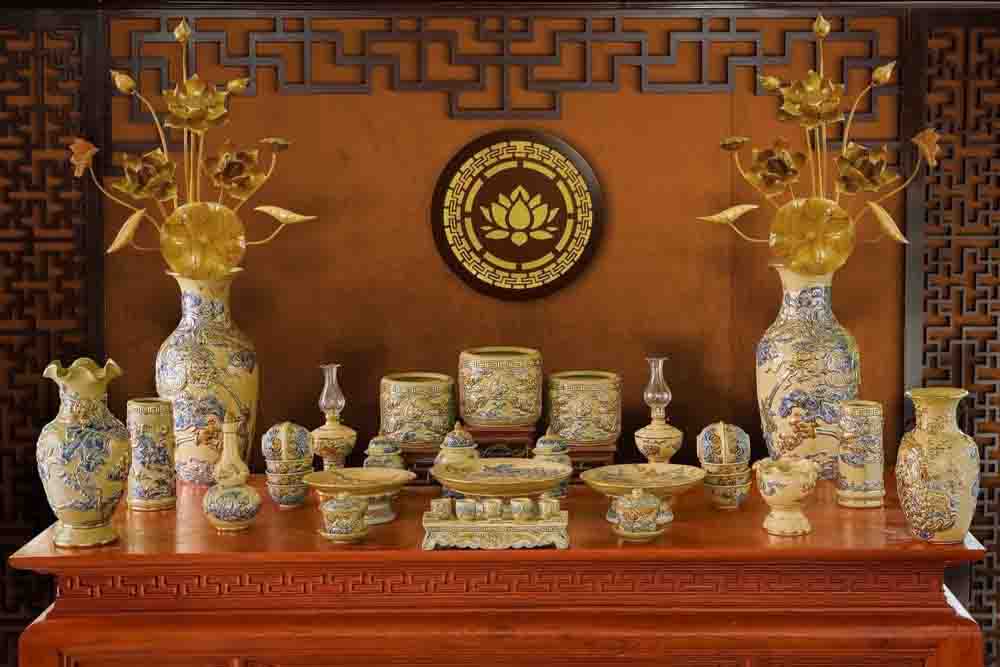 Sự kết hợp hài hòa giữa công năng và thẩm mỹ là điểm nhấn tạo nên giá trị vượt thời gian cho bộ đồ thờ gốm sứ Bát Tràng.