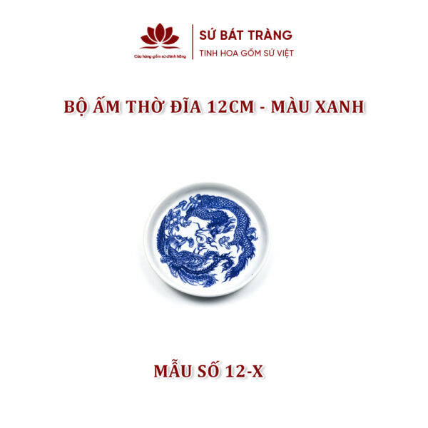 Bộ ấm chén thờ màu xanh kích thước đĩa 12cm