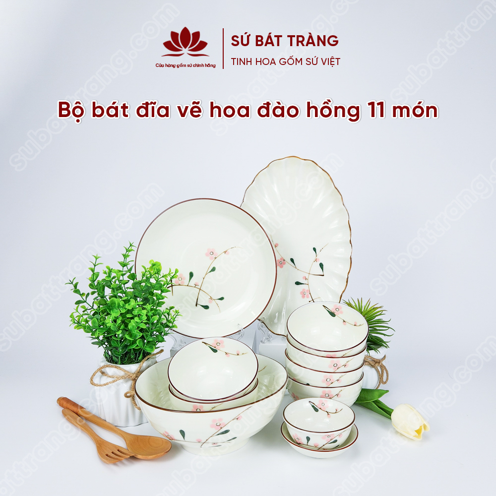 Sản phẩm: Bộ bát đĩa vẽ hoa đào hồng